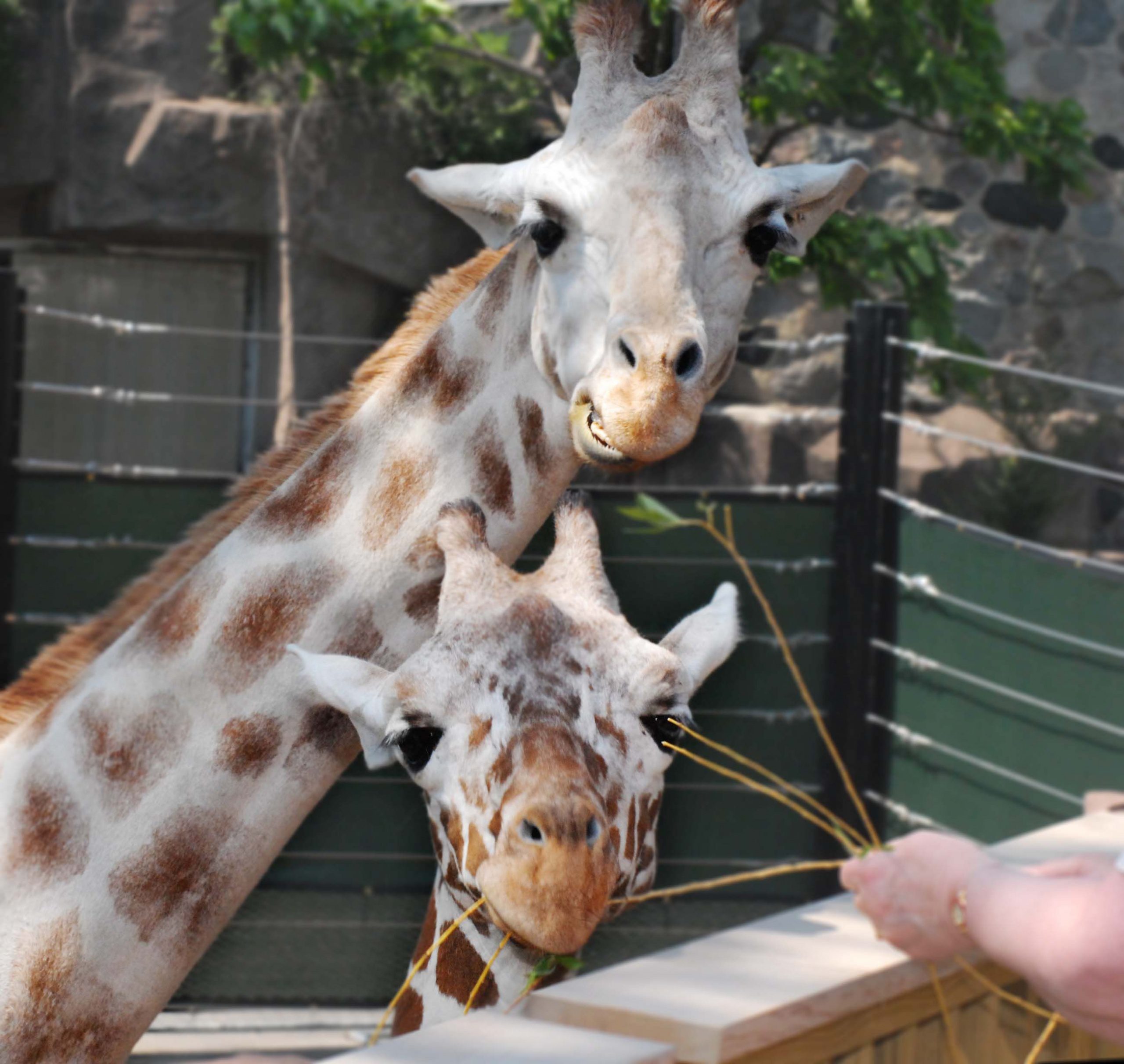 | Africa: | Ostriches, African lions, hyenas, zebras, black rhinos, giraffes and hippopotamus are among the African wildlife featured.The Zoo simulates nature by seeming to exhibit predator and prey in the same enclosure. However, the prey is protected from its stalkers by invisible dry moats weaved between the foreground and background exhibit areas.In the African Waterhole, antelope, Chapman’s zebra, ostrich and stork live in close proximity to the African lions. Also, the African Savanna displays the cheetah overlooking the Thompson’s gazelles, impalas and crowned cranes.In 2006, the Zoo unveiled a renovated Giraffe Exhibit – MillerCoors Giraffe Experience. The exhibit features expanded indoor and outdoor spaces for the animals, and the rare opportunity for visitors to get face to face with our reticulated giraffes. The public also can feed these animals for a fee. In 2013, we welcomed two additional female giraffe into the group – Marlee and Ziggy. |