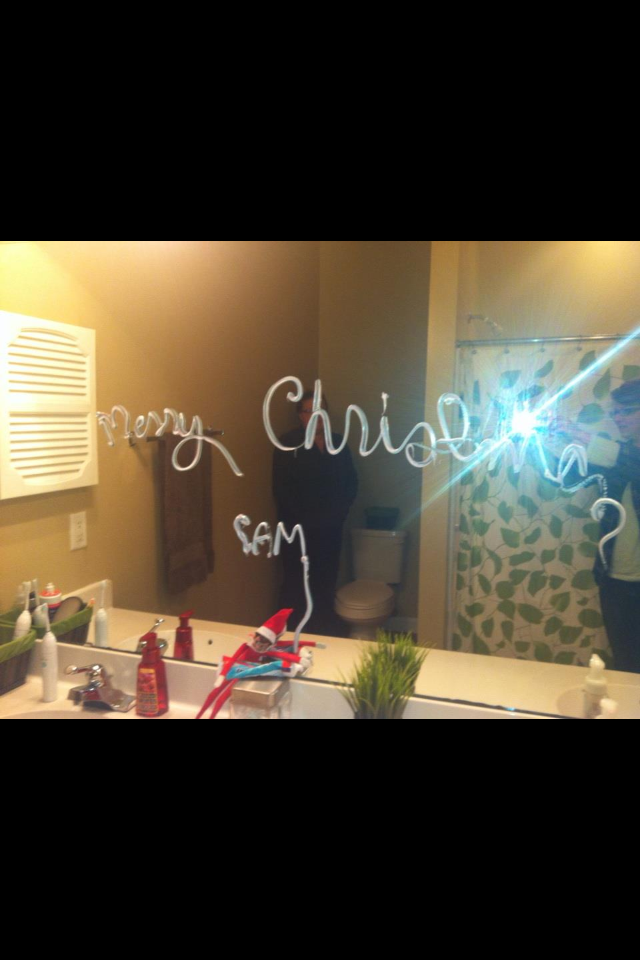 - Elf on the Shelf writes a message in toothpaste.