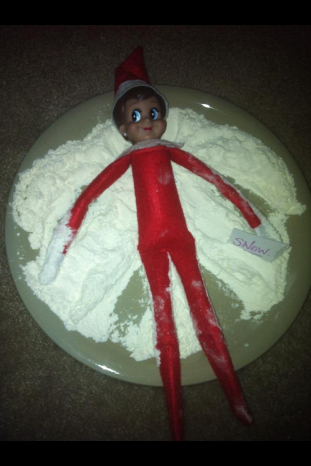 - Elf on the Shelf made a snow angel in a plate of flour.