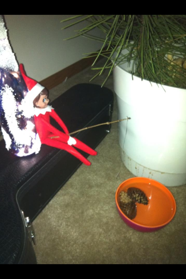 - Elf on the Shelf fishes for pinecones.