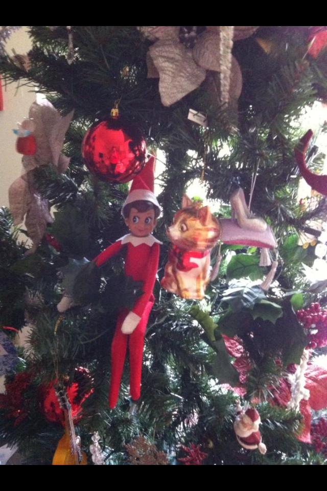 - Elf on the Shelf hides in Christmas tree.