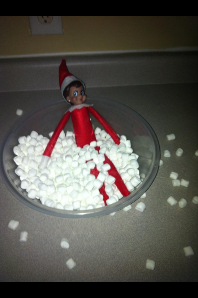 - Elf on the Shelf bathes in marshmallows.