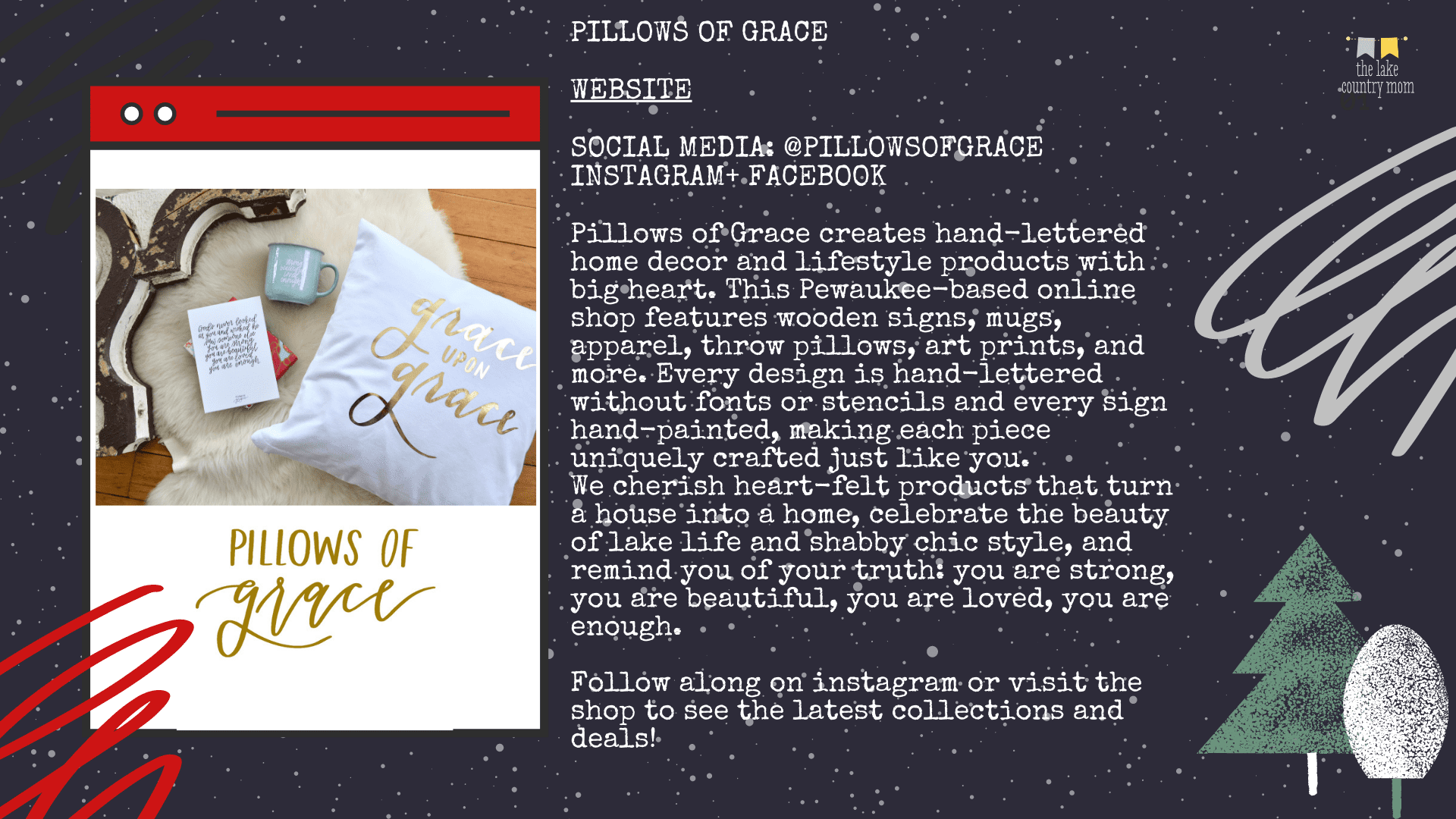 We are so lucky to live in the stunning lake country area, what’s even better is how gorgeous it is during the holiday season! Lake country is home to so many small and local businesses, and we have such a great community to support them. You!